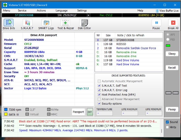 - Hỗ trợ quét toàn bộ bề mặt ổ cứng HDD để phát hiện lỗi